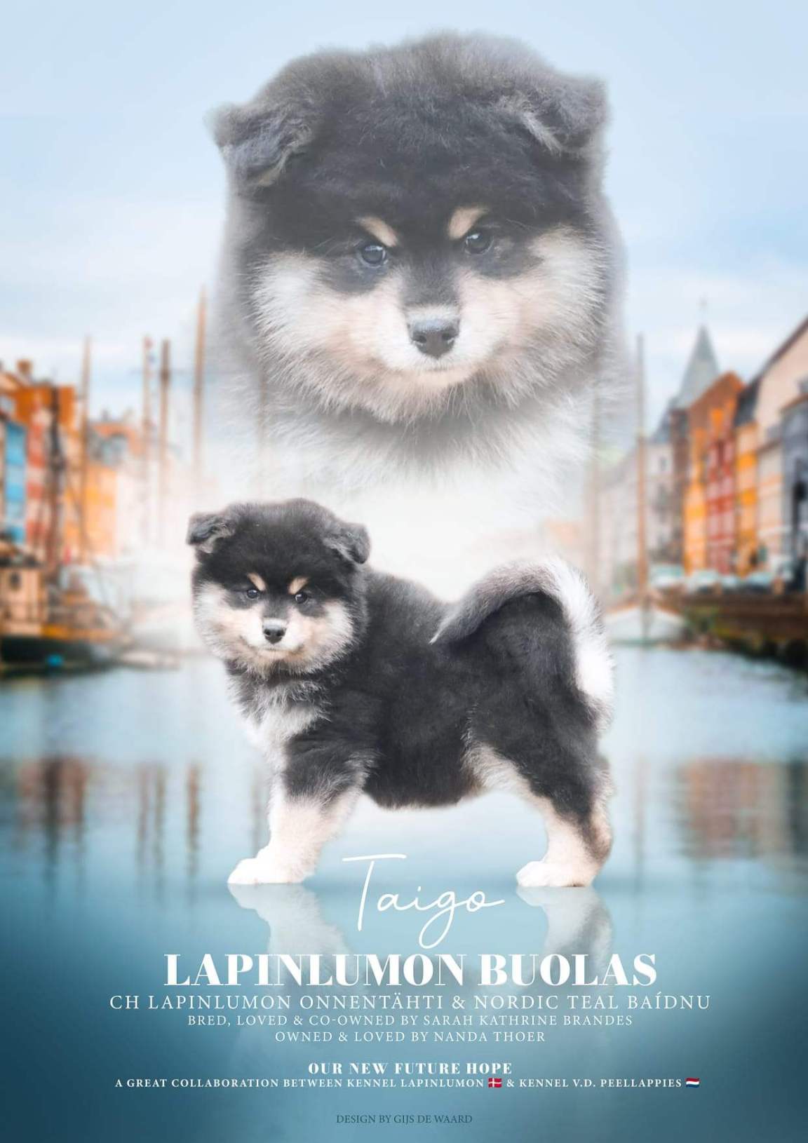 Taigo is geco-owned met Sarah van kennel Lapinlumon. Ik ben haar dan ook erg dankbaar voor deze samenwerking en het feit dat ze vertrouwen in ons heeft en Taigo aan ons toevertrouwd.